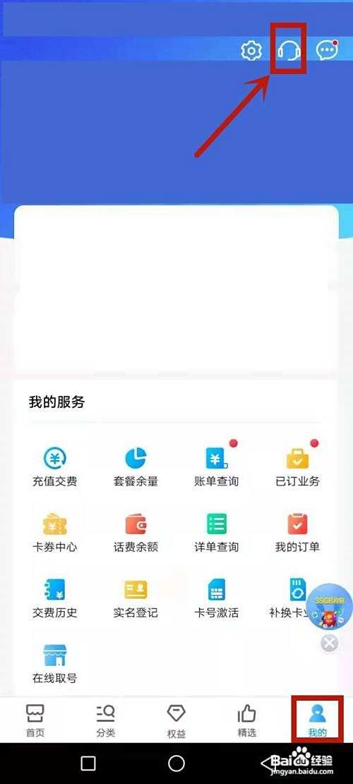 第一步,在手机上打开中国移动app,点击《我的》,右上角客服图标。