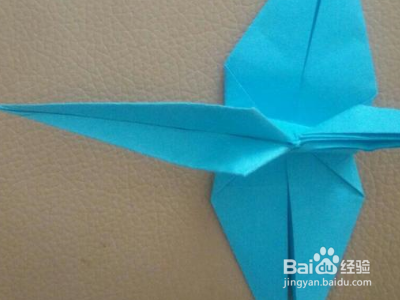 把菱形的下面往上折,另一面一样的折法,把有折痕的三角往里面折回去,剪开翅膀的折痕,它的尾巴那像它的两面各折叠一次,然后压平左边有折痕的地方,并且往回卷,这样我们的一只小动物就完成了。