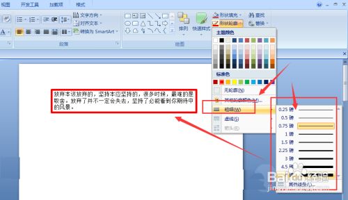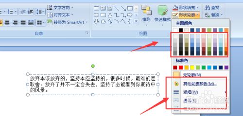 选择需要添加边框的文字,然后找到开始菜单栏下的形状轮廓选项设置