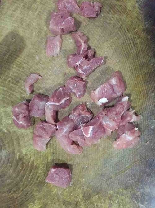 2将拍打过的梅肉切成1厘米大小的方块待用