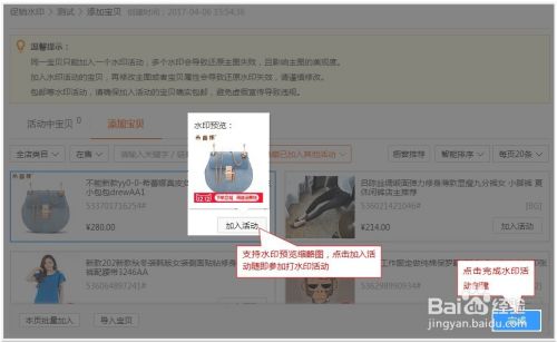 已加入即说明加入水印活动成功了,点击【完成】,点击宝贝跳转宝贝链接页面查看最后效果,如图: