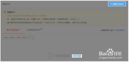 首页点击左侧工具栏【宝贝引流】—【促销水印】进入,点击【创建水印活动】,如图: