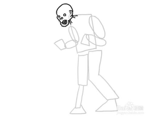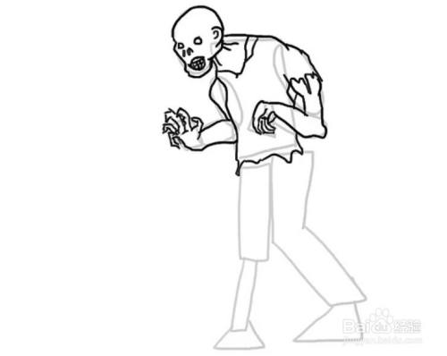 根据僵尸身体的轮廓,画出身体和手部的细节。