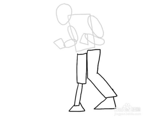 画相互交错的长方形当做僵尸的腿,梯形当做脚。