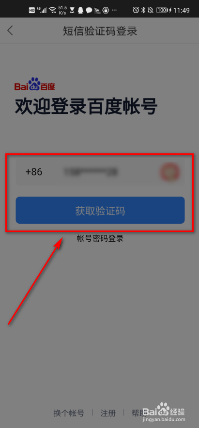 输入手机号码,点击获取验证码。