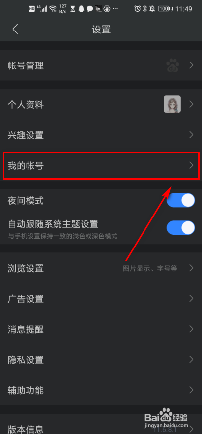 4、点击我的帐号。
