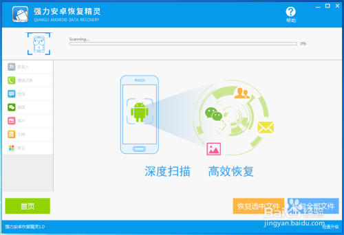 运行恢复精灵并扫描手机完成连接。选择恢复通话记录来对手机恢复通话记录的操作。