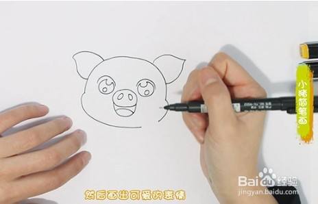 先画出小猪的头部,头两边画上大大的耳朵,画上大大的眼睛和猪鼻子,看起来可爱极了。