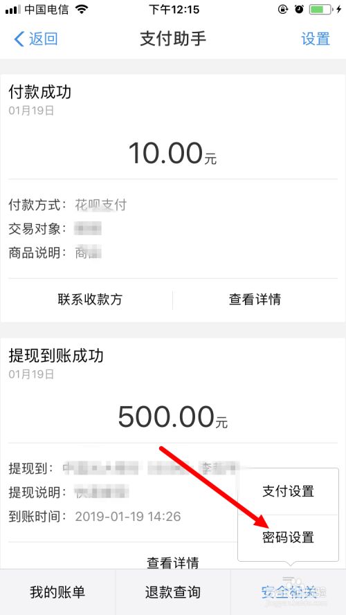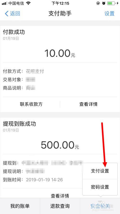 此时会弹出对话框,一个是 支付设置 ,一个是 密码设置 。先来点击 支付设置 ,可以直接进入 支付设置 的页面,进行相关操作。