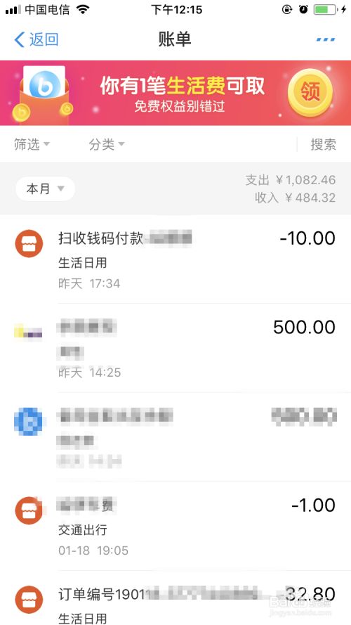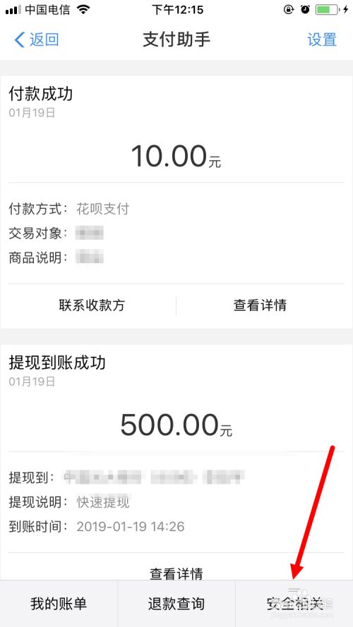 这样我们就可以进入 支付助手 的页面。我们先来点击 我的账单 ,以便查看自己最近的支付和收入情况。