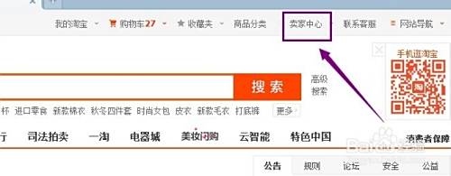 登陆成功后,点击顶部的“卖家中心”,如下图。
