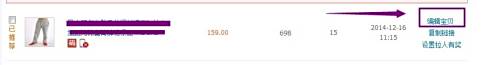 在此宝贝最右侧,可以看到如下图的一个”编辑宝贝“按钮,可以点击它进行下一步的操作。
