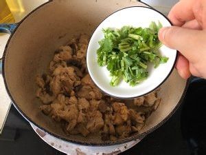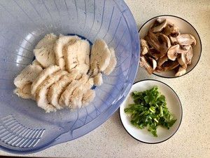 将猴头菇洗净捏干切片备用,香菜洗净切末,蘑菇洗净切片备用