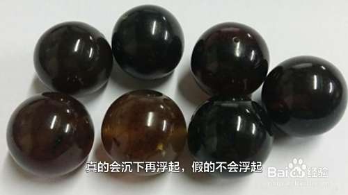 区分药珀真假可将其放入水中,慢慢加盐,真的会沉下再浮起,假的不会浮起。