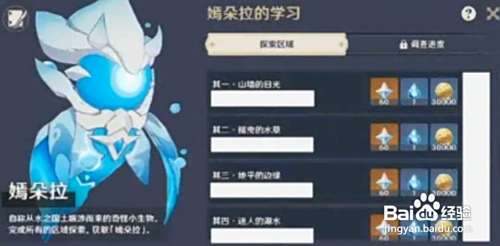 在进入宠物嫣朵拉的活动界面中完成四个区域的探索任务