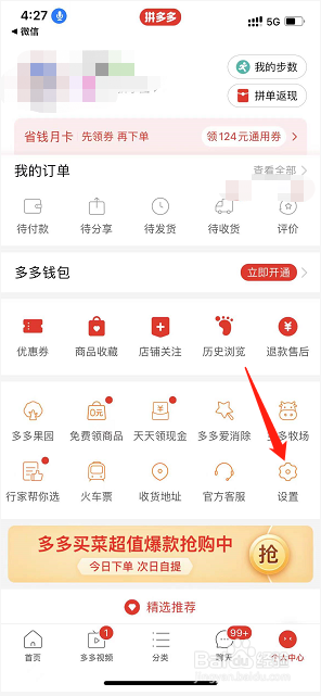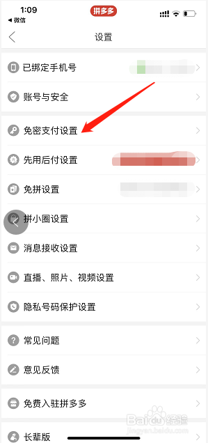 进入拼多多设置页面后,在功能栏找到免密支付设置,点击进入。