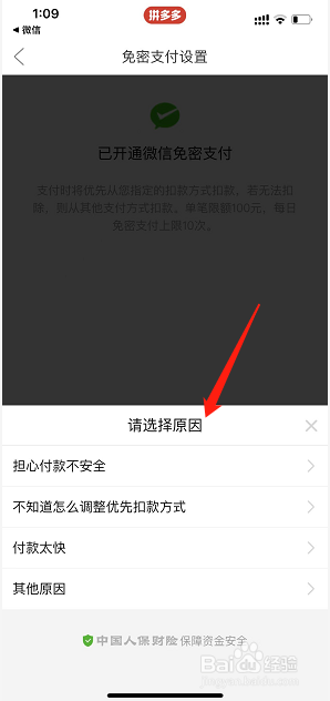 进入关闭免密支付页面后,在弹出的选项中选择需要关闭的原因。