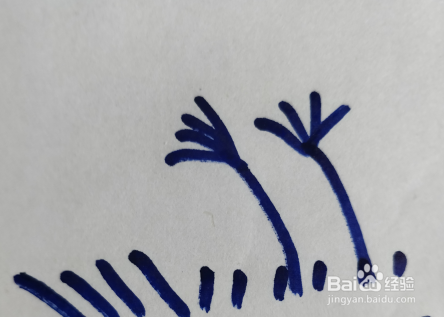 自其上端点,画上发散的短曲线,作为芦苇花儿。