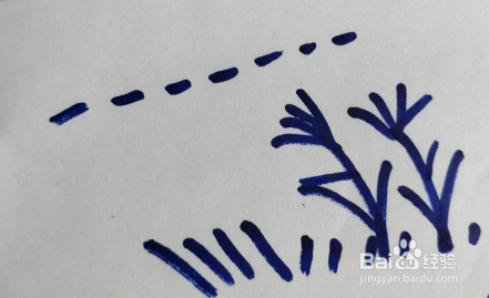 右侧接着画上长度逐渐变短的竖向曲线,作为杂草。