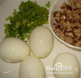 鸡蛋干切碎,香芹切丁,鸡蛋煮熟去皮(鸡蛋备用了一个怕坏了)