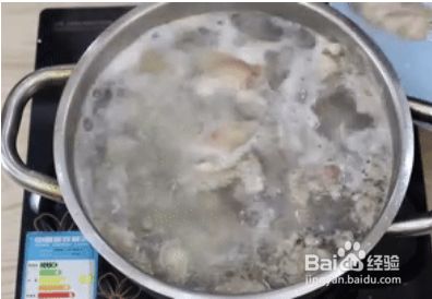 锅中加清水,水烧开后放入猪蹄,撇去浮沫,焯尽血水,再盖上锅盖转小火焖煮10分钟,捞出沥水后备用。