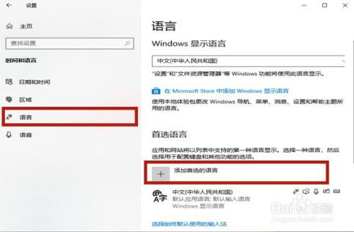 挑战到新页面以后选择【语言】,之后在右侧点击【添加首选的语言】