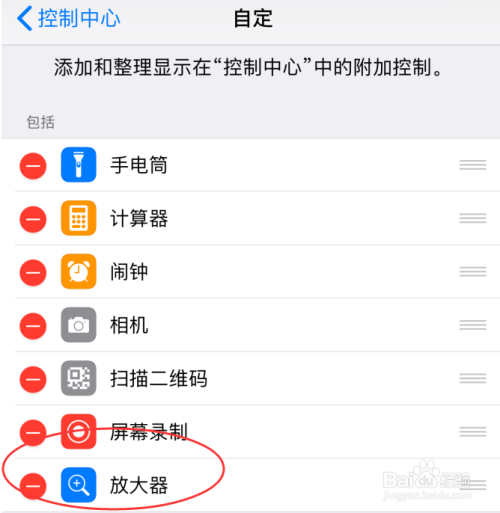 5、这样,iPhone手机控制中心就成功添加上了放大器功能
