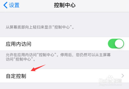 进入控制中心设置页面,点击自定控制