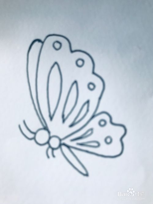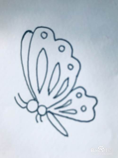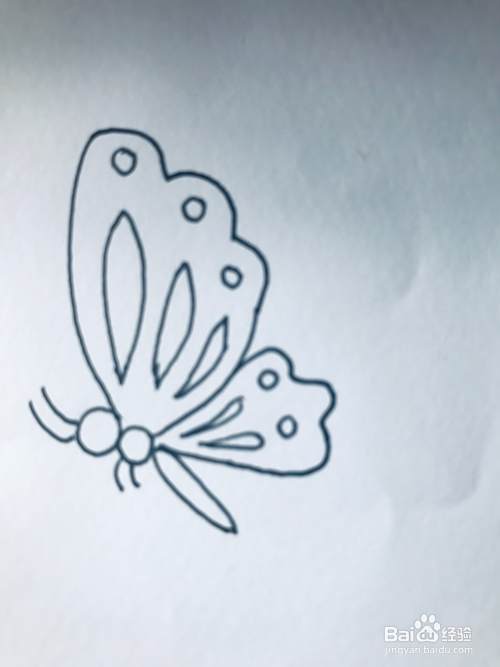 最后,再大翅膀上画一条线,这样小蝴蝶就画好了