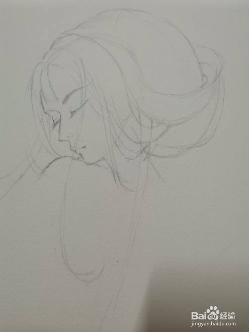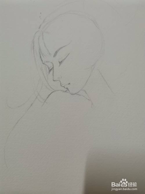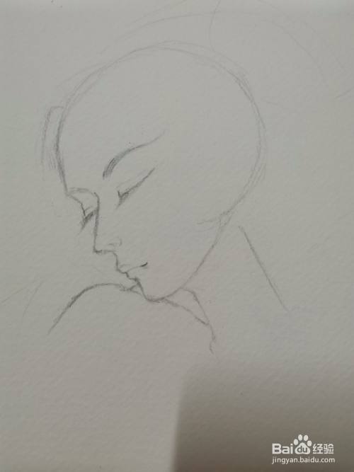 先轻轻地勾勒出头、脸和五官的位置。
