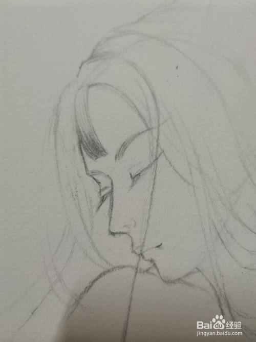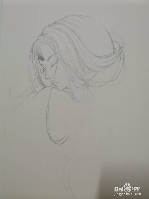 画出左边头发的轮廓和动态。