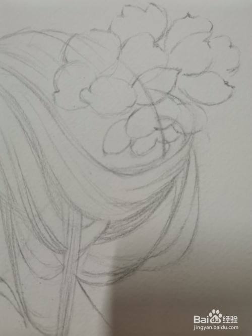 勾勒出人物下面的花朵轮廓,然后再画出花朵里面的细节。