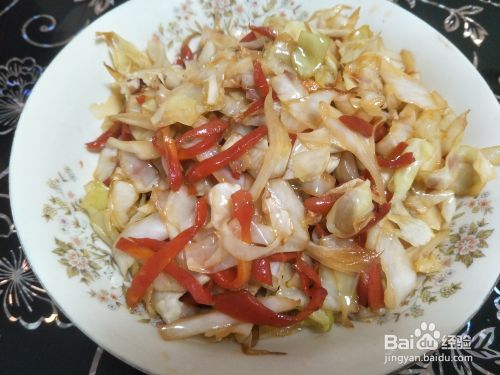 如果之前食用油就加得多,这个时候就直接倒莲白丝,如果之前加得少,就再倒一些食用油。然后翻炒均匀。