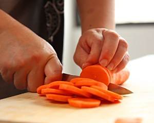 将胡萝卜削皮,然后切成片;