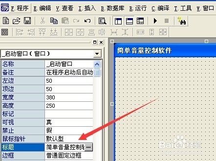 在工作夹下方点击属性,修改程序的标题为“简单音量控制软件”。