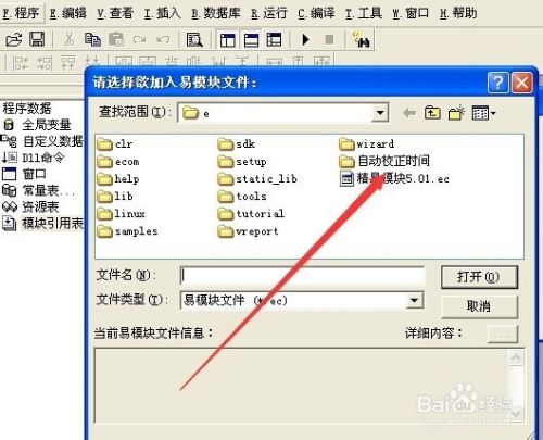 在工作夹下方点击程序,双击模块引用表,找到准备好的“精易模块5.01.ec”的路径,并打开。