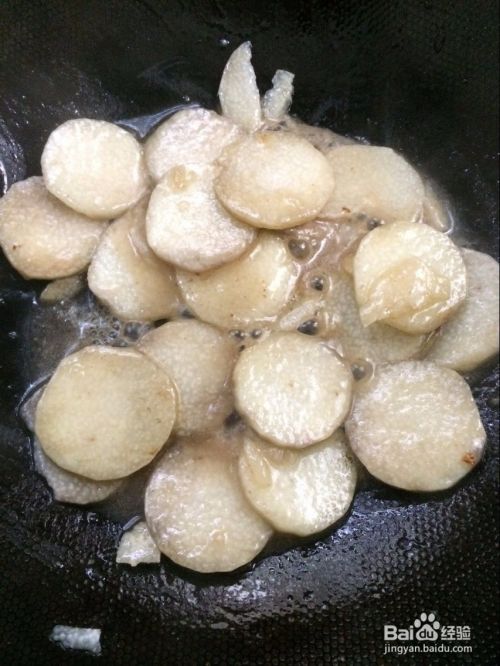 放盐加点水继续翻炒,这时会出来很多的粘液,把火关小点,然后放点糖,再放点醋,继续翻炒一会。