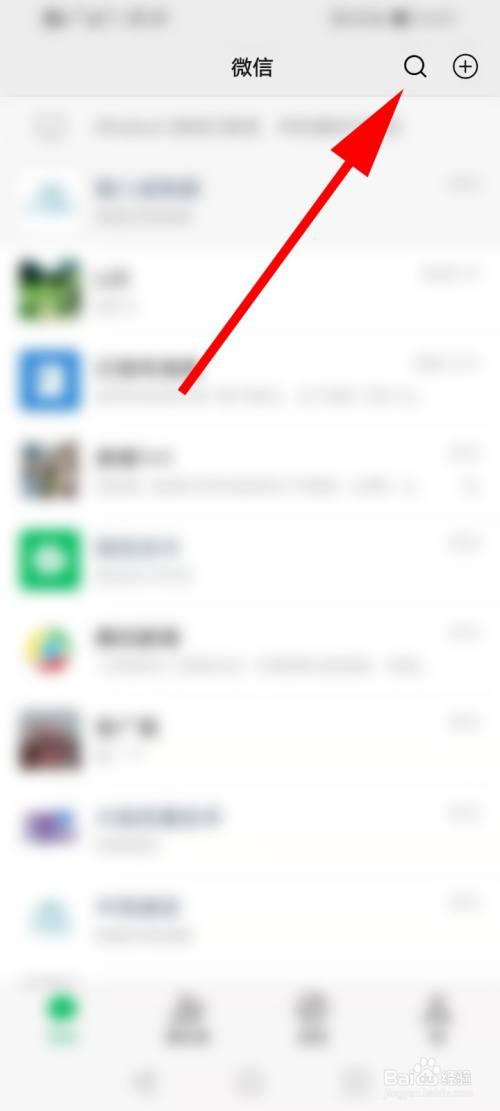 进入手机【微信】首页后,点击右上角的【搜索】按钮。