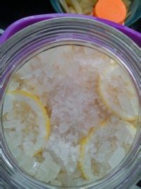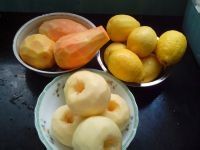 开始放水果咯,先在底部放入柠檬,然后放糖,再放入苹果,再放粮,然后是木瓜,再是糖,坚持是一层水果一层糖的原则,容量只能放到八分满哦,要留有空间给水果们发酵....糖的话,你可以只选择一种糖,我是打算一层红糖一屋冰糖这样,因为红糖口感比较好哦....