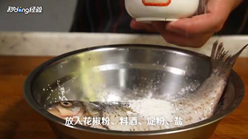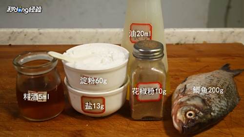 准备食材料酒5ml,淀粉60g,盐13g,花椒粉10g,鲫鱼200g。