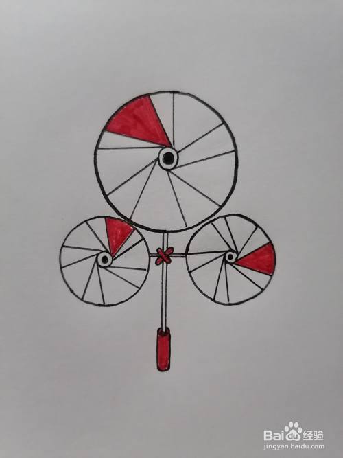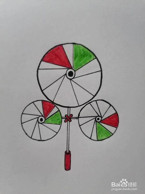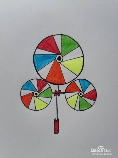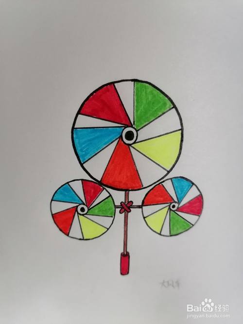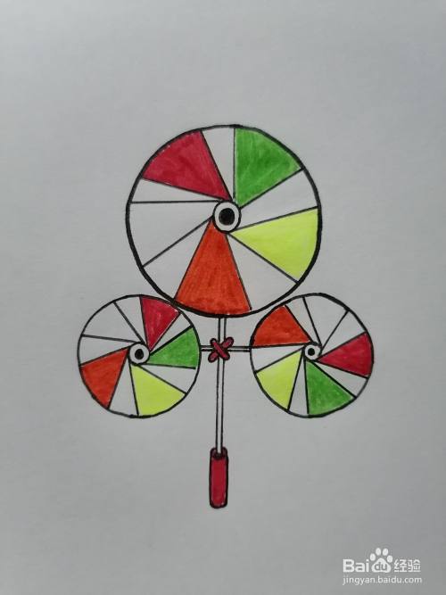 最后用喜欢的颜色涂好手柄,风车就画好啦