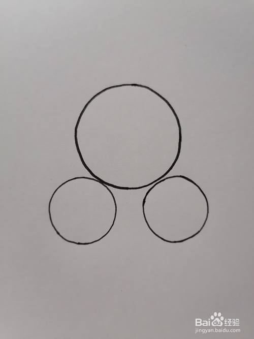 首先在纸上画一个大圆和两个小圆,在圆上画一些三角形