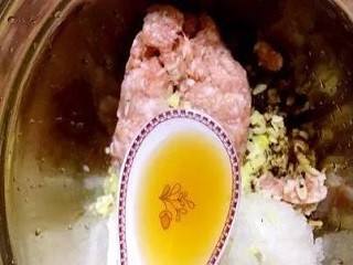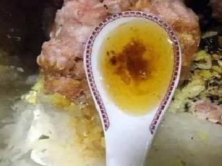 加入生抽、白糖、食盐、香油和蛋清,搅拌均匀。
