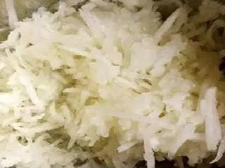 白萝卜擦丝,放入食盐,搅拌均匀,腌制15分钟。