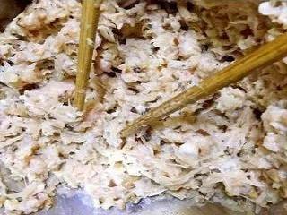 白萝卜、香菇、五花肉、虾皮、料酒和生姜混合,搅拌均匀。