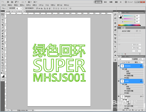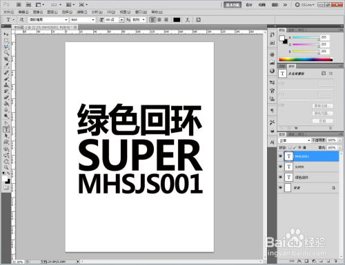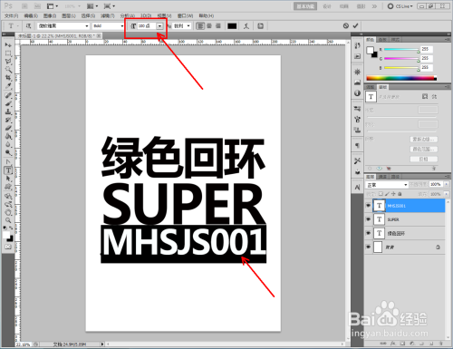 调整字体大小后,继续完成“SUPER”和“MHSJS001”两组文字的制作;