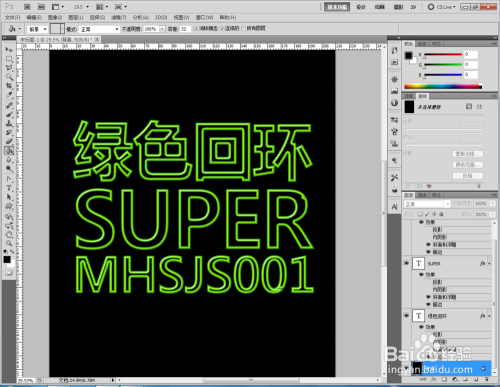 最后,将我们设置好的绿色回环效果图层样式拷贝粘贴给另外两组文字图层即可。