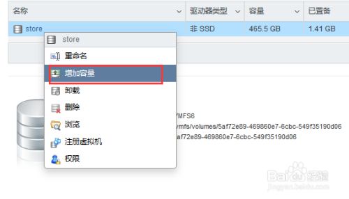 对刚创建的存储右键选择“增加容量”