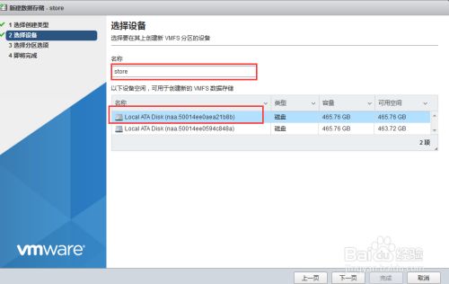 给添加的存储命名,并选择要添加的硬盘