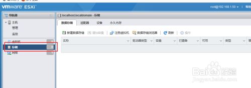 打开浏览器,输入ESXi主机地址,并切换到存储管理界面